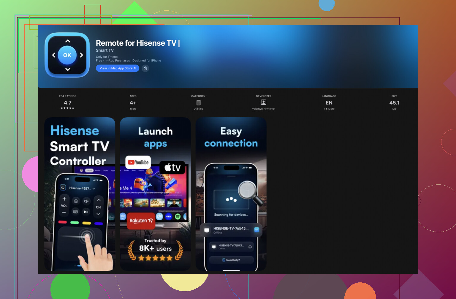 Overall, this became my main remote app because it worked across devices, not only the Hisense Roku.