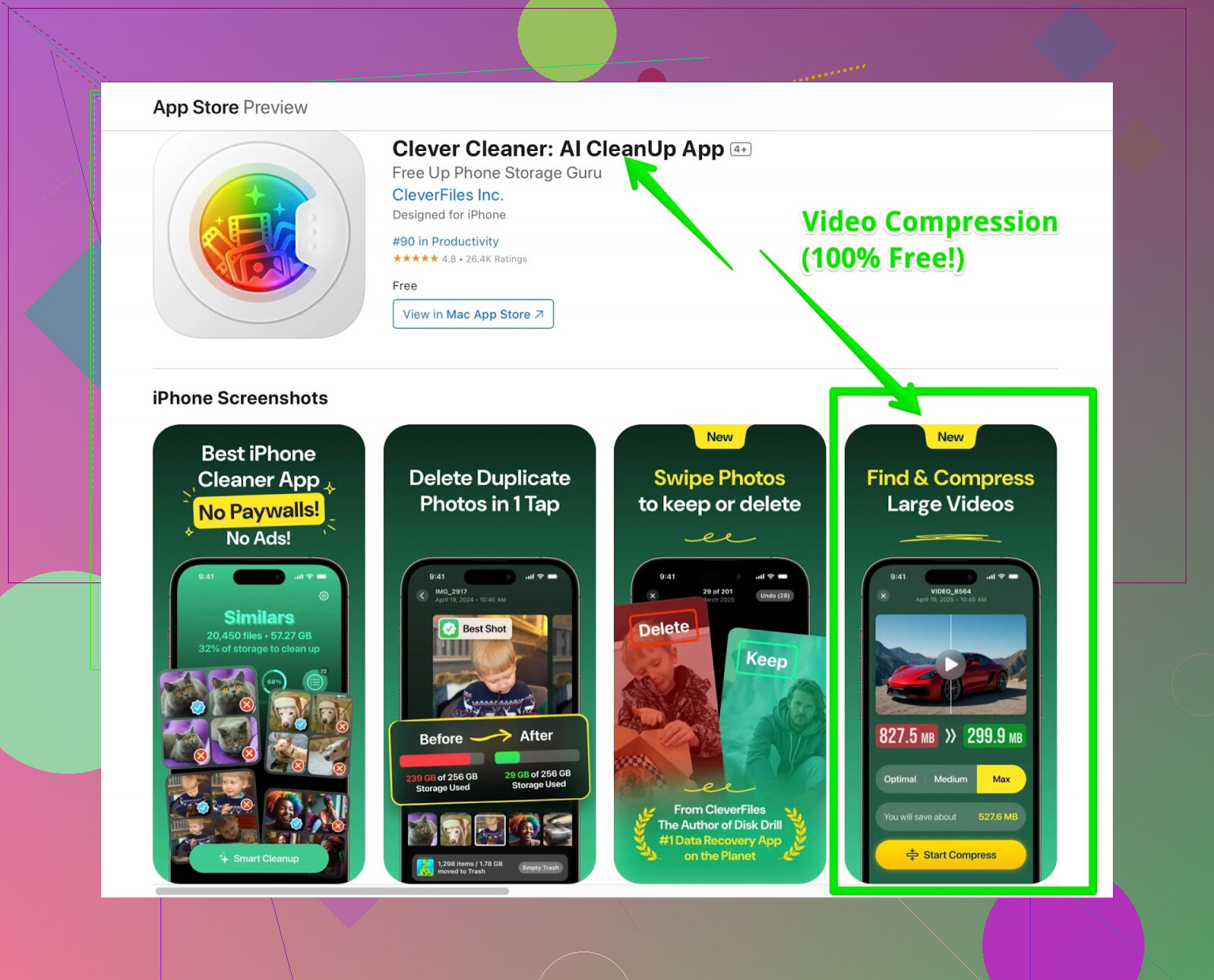 Anyone had actual luck with online-only compressors? Or are those even riskier privacy-wise? Still, for the “managing bloat before compressing” game, Cleaner Cleaner is winning right now unless Apple does something wild with the next iOS.