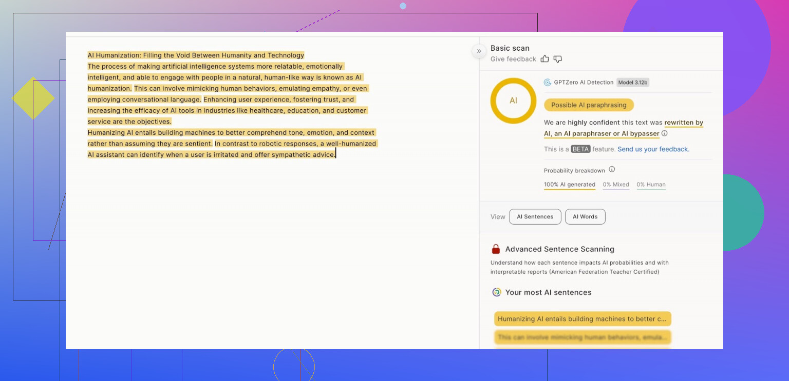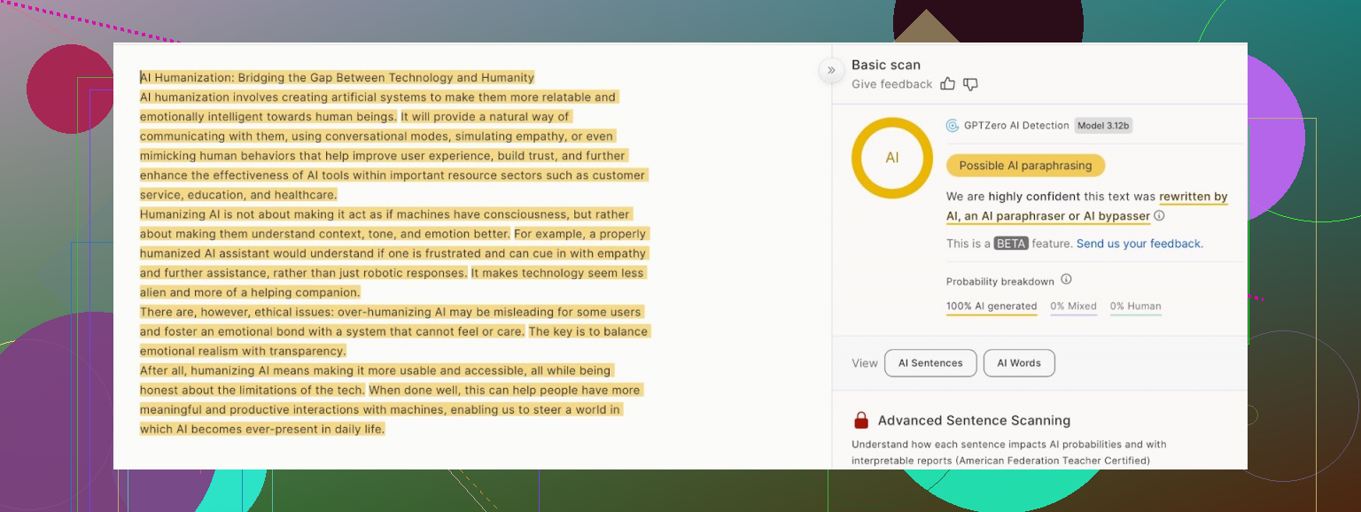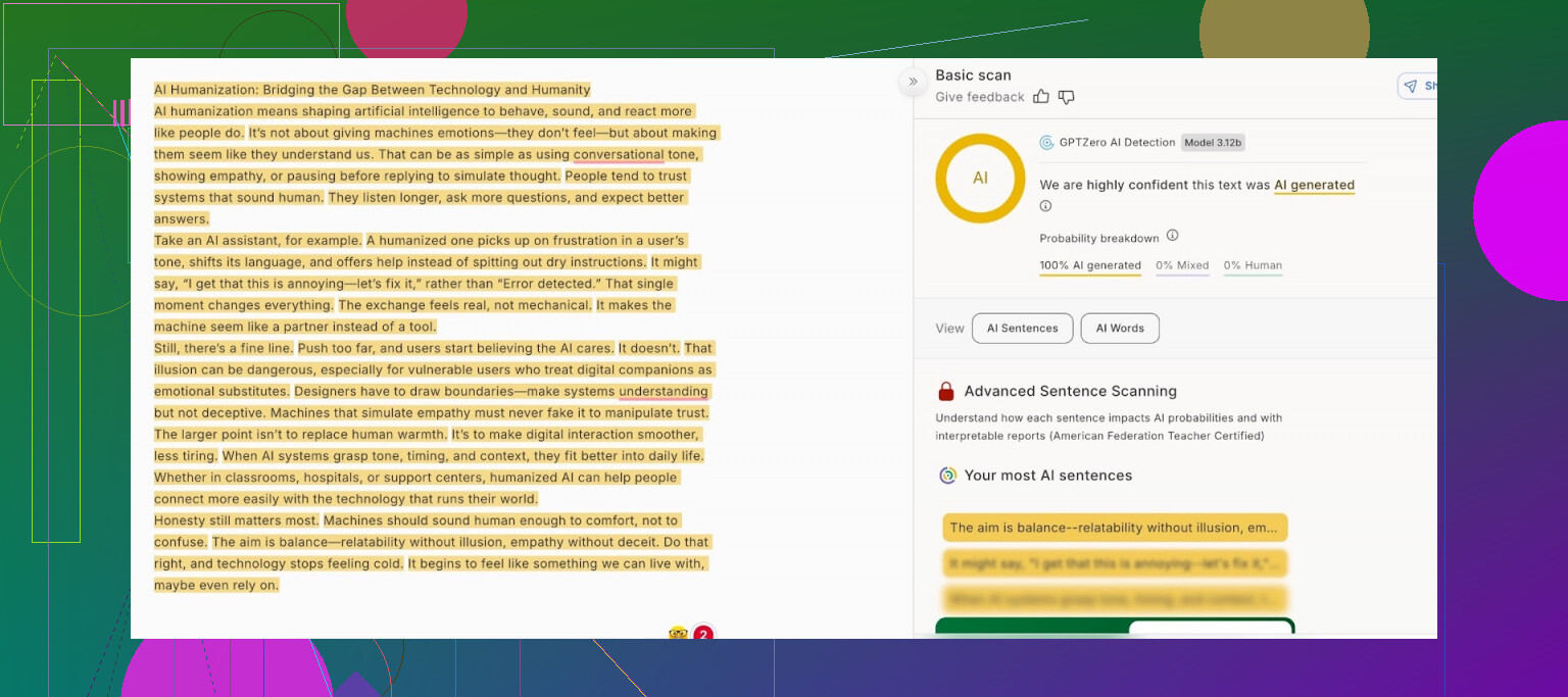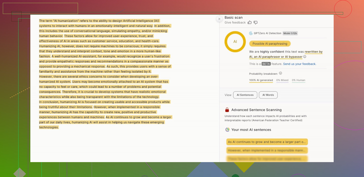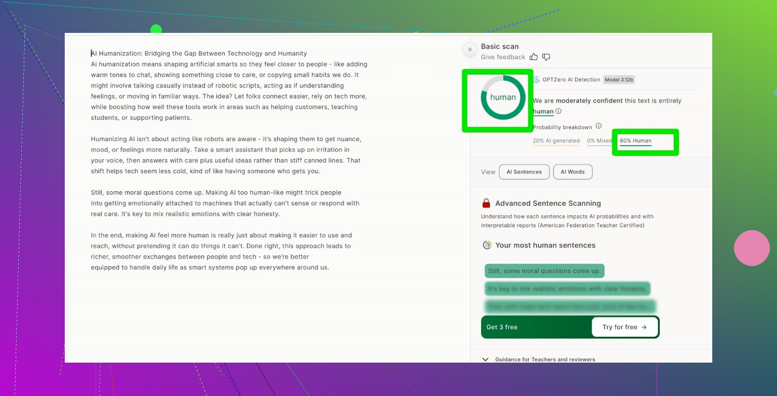 Et sur GPTZero ? Zéro. Grillé comme IA pur jus. Voilà pourquoi : les prompts genre “réécris plus humain” ne cassent pas vraiment le rythme ou la structure du texte. GPTZero se base sur la variety des phrases (burstiness, perplexity, etc.). Si tu gardes la même structure mais changes juste les mots, c’est fichu.