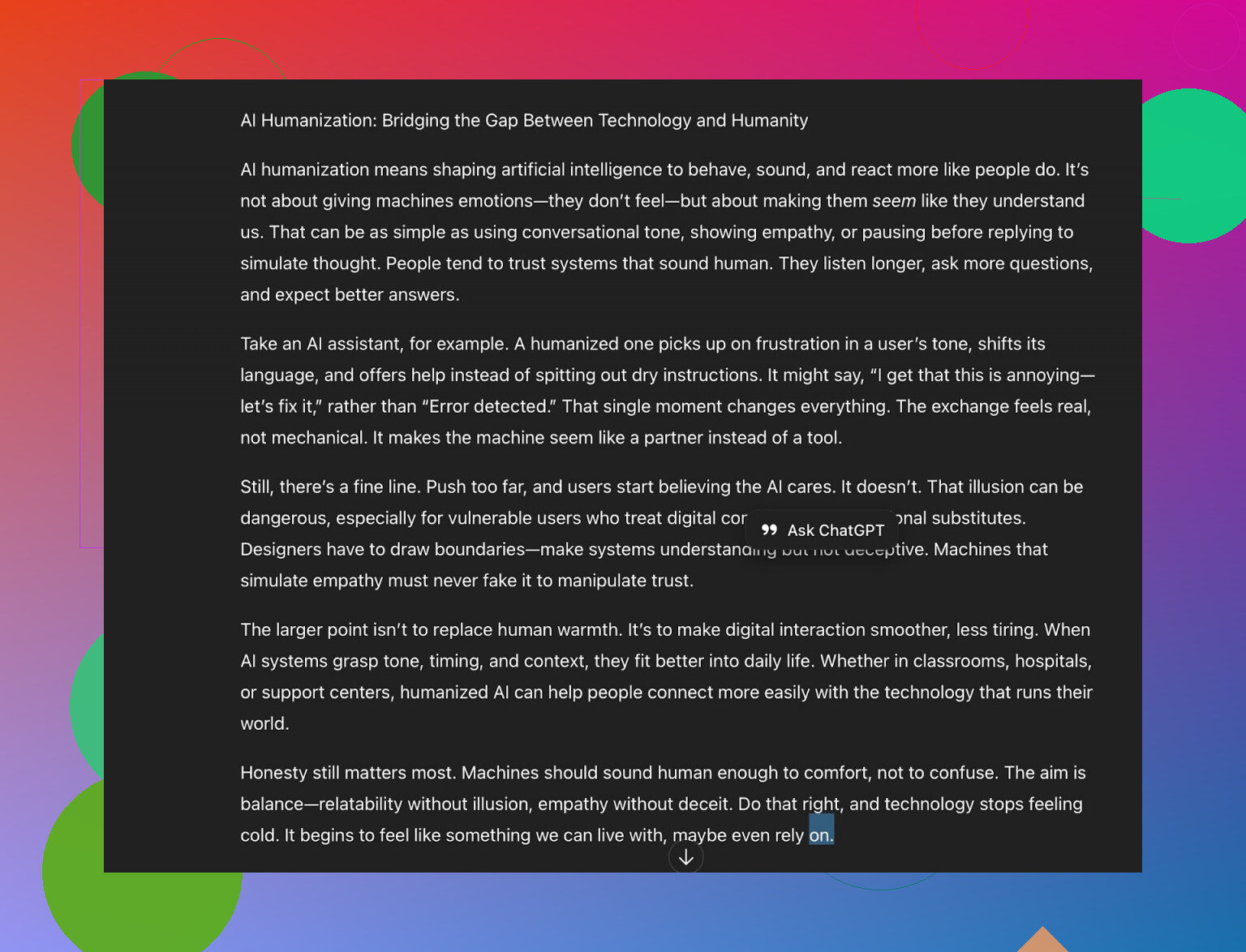 Honnêtement, si tu veux « le résultat le plus naturel », utilise Clever Ai Humanizer pour structurer le texte et repasse ensuite rapidement pour fignoler. Rien d’autre pour l’instant ne transforme magiquement la production rigide de l’IA en un texte indécelable par ton boss ou ton client. Les détecteurs risquent par ailleurs d’évoluer, alors garde l’œil ouvert pour les nouvelles solutions qui vont débarquer.