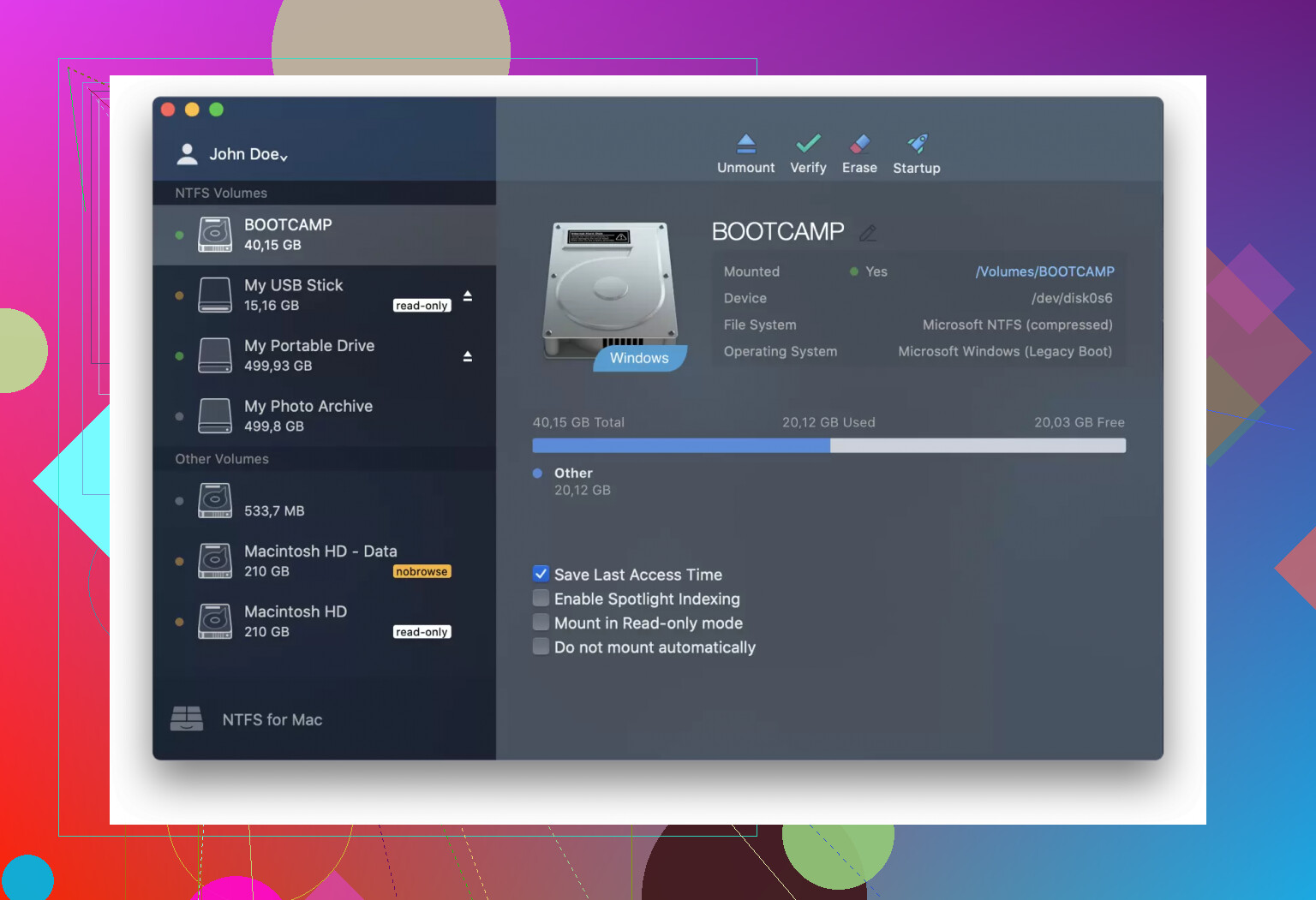 - Also supports formatting volumes to NTFS from macOS.