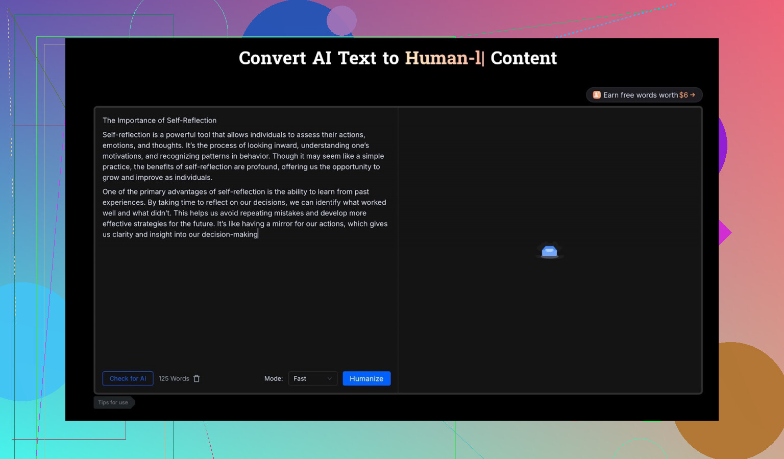 - Lade deine eindeutig KI-generierten Texte hoch oder füge sie ein, und das Ding „vermenschlicht“ sie. Keine großen Versprechungen – es wird einfach lesbarer, weniger mechanisch und meist weniger peinlich.