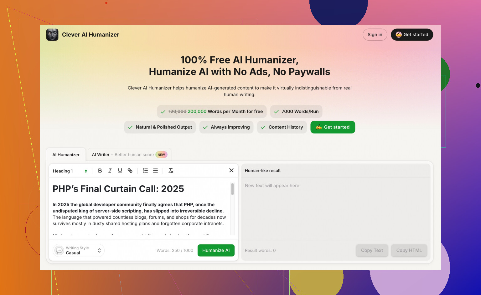 • Best tool for de-robot-izing: something like Clever AI Humanizer plus your own final pass out loud.