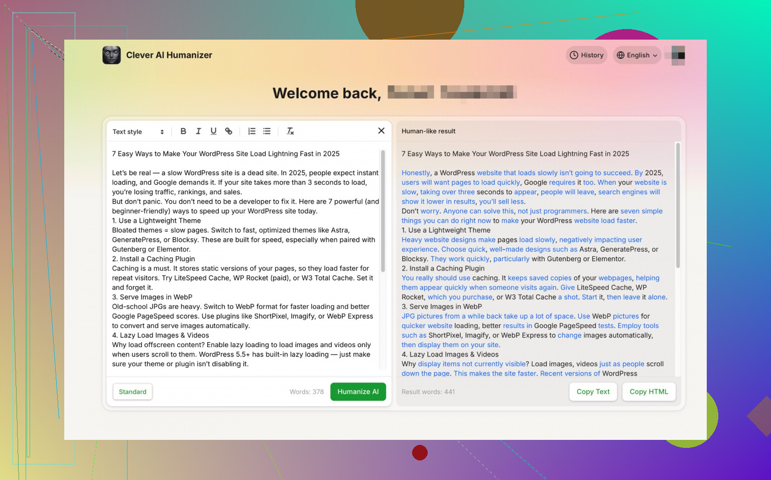 - Clever Ai Humanizer: Fast, free, beats basically every detector, but sometimes your English teacher will notice you’re missing a comma or two.