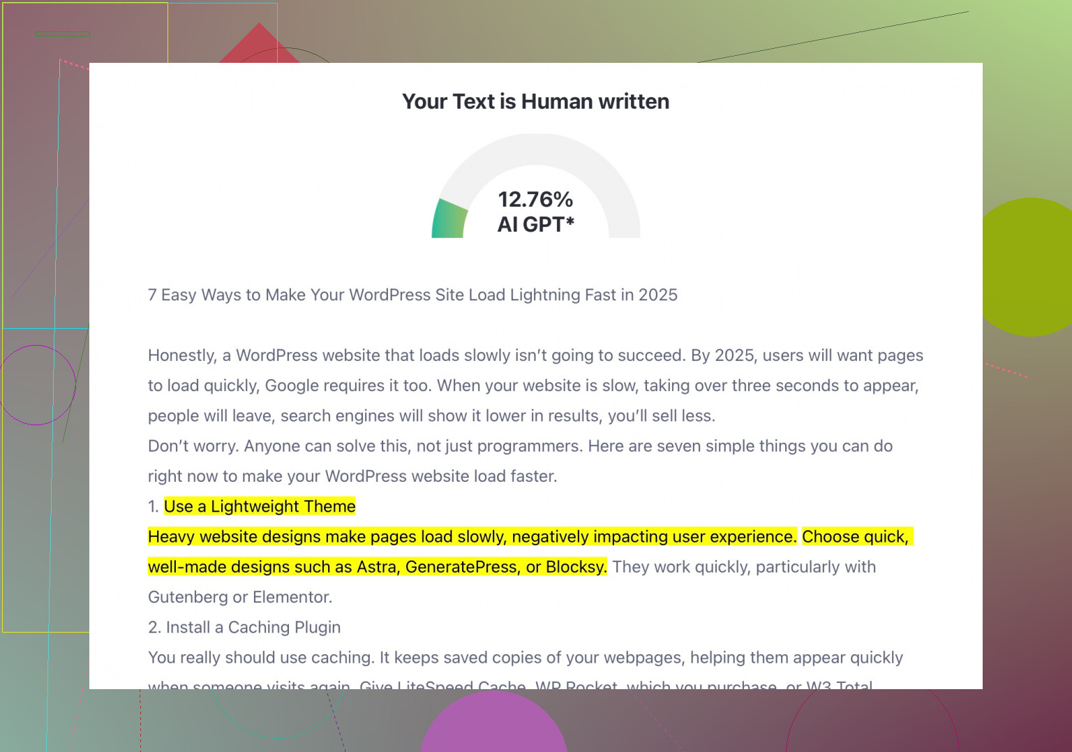 Look, ZeroGPT should probably stop making bold claims. All I had to do was make things sound like I was talking to my dog, and suddenly my “AI score” nosedived from 100% to a sad little 0-13%. If you’re worried about being flagged, a casual tone is your cheat code.